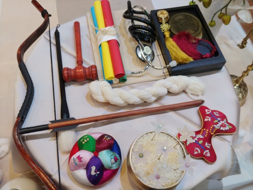 돌잔치 당일에는 실장님께서 미리 오셔서 돌상을 세팅 해주시고 간단하게 돌잡이 용품들의 의미를 하나씩 설명해주시며 사회도 봐주셨어요^^
